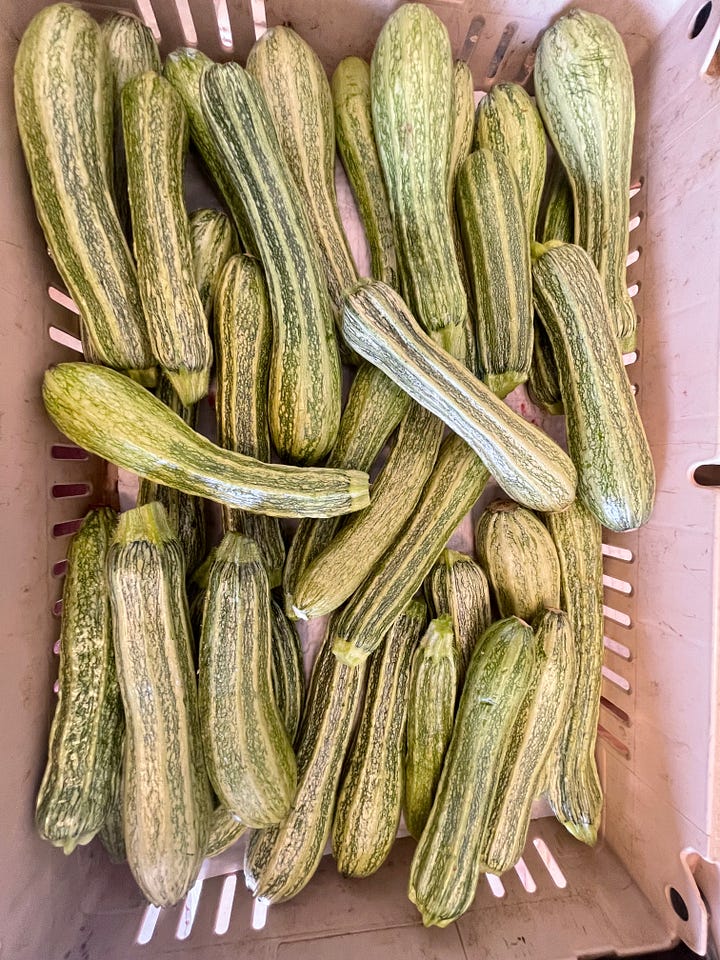 This week, our partner Lucero Organic Farm reached out and said he had Summer Squash and Zucchini available. And I thought “great!” Little did I know that he meant he had a bunch of the traditional Zucchini I like, but a ton of super fun varieties as well. This is a summer staple in our house and we are excited it’s raised organic, local and in season. Buy some for delivery next Tuesday morning!